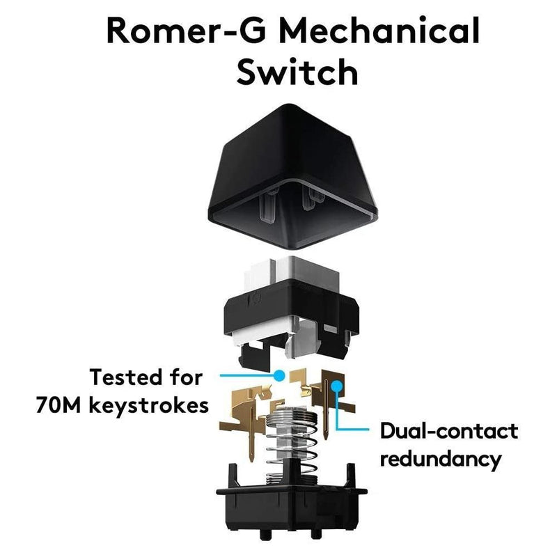 The Romer-G™Tactile mechanical switch features a short-throw actuation at 1.5 mm—25% faster than the competition's standard mechanical switches. A perfect blend of speed, precision and quiet performance, Romer-G Tactile provides confidence in the actuation moment with a discernible bump.