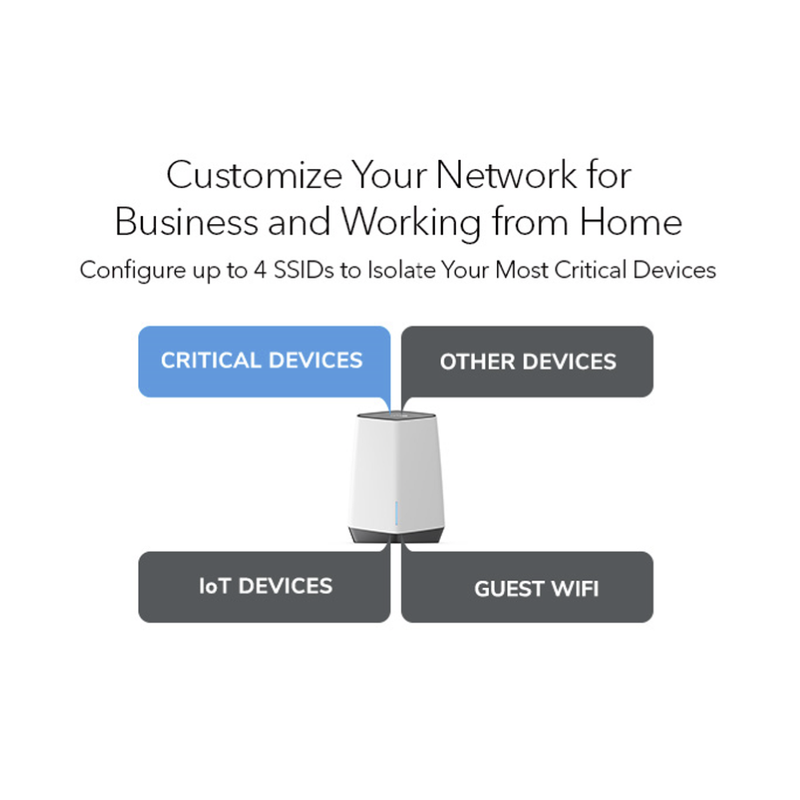 Orbi Pro is the industry's first mesh system to support IP segmentation across wired and wireless interfaces. Isolate network segments by assigning individual Ethernet ports and SSIDs across the router and all satellites to any VLAN you create.