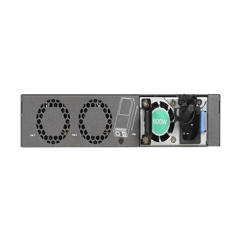 Hardware Specifications : 16 Ports RJ45 PoE+ Multi-Gigabit 100M/ 1G / 2.5G / 5G / 10G. 1 Modular Bay with 1 600W Modular PSU included APS600W. 1-unit 1U / 2-unit 1U Rack Mount (Included). 320 Gbps Switching Fabric. Fixed Fan Front-to-Back 35db