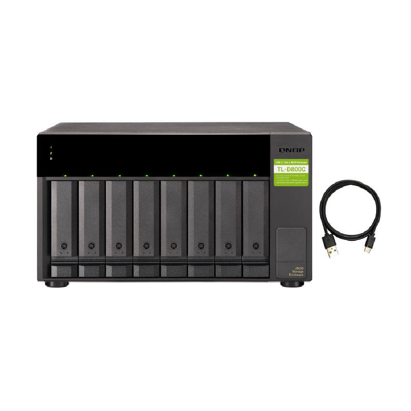 The TL-D800C JBOD storage enclosure allows you to back up and expand your QNAP NAS. The TL-D800C features eight 3.5-inch SATA 6Gb/s drive bays with USB 3.2 Gen2 (10 Gbps) Type-C connectivity to provide a fast and smooth expansion solution.